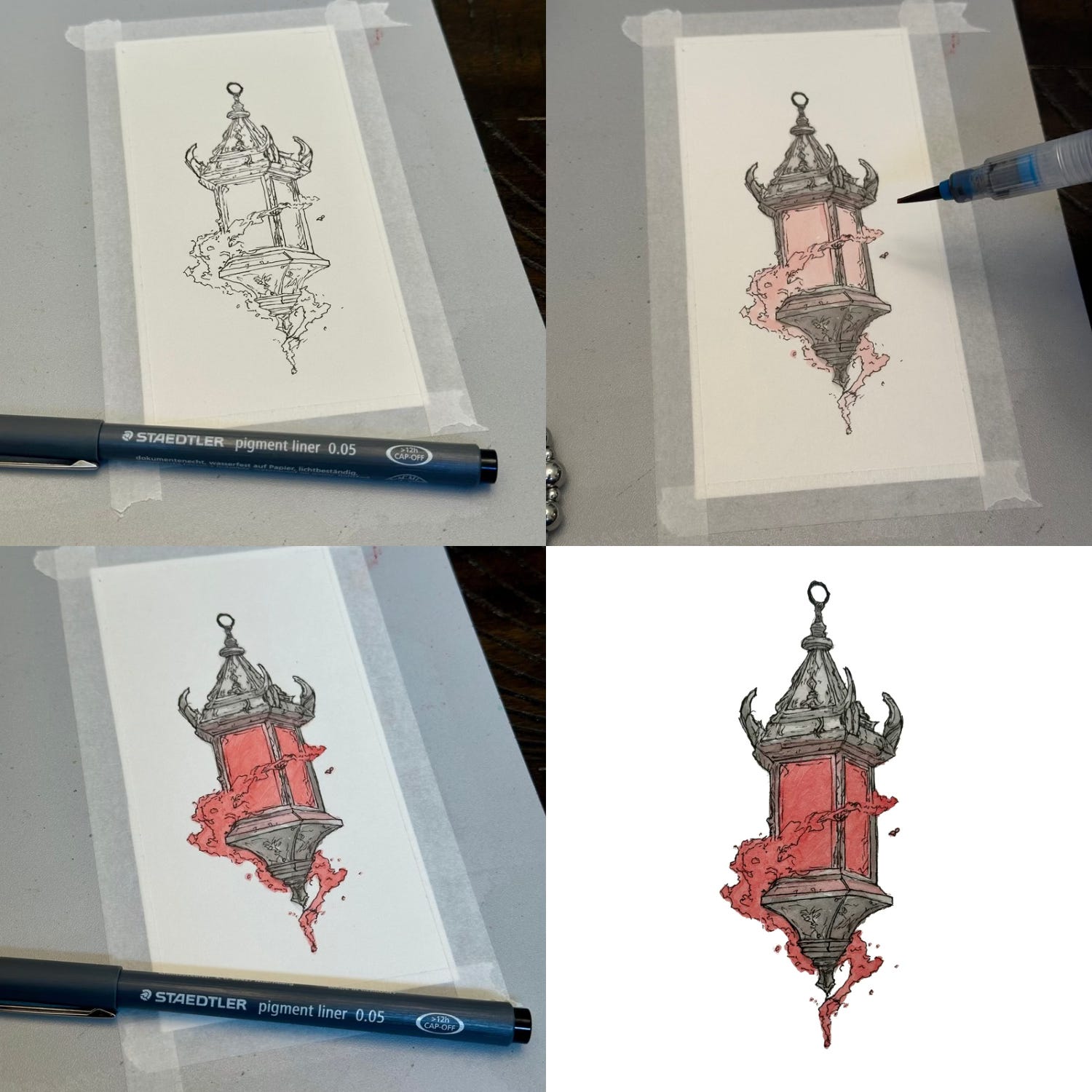 It possesses many hand-drawn & hand-painted pieces of artwork, some of them are very Tiny Watercolor Paintings (1.5in x 3in).